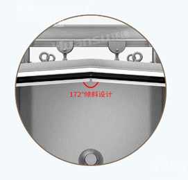 具體到細節上,新一代鮮食冷卻機依舊采用三級聯合抽真空技術,更成熟的優化方案進一步提高了制備真空的效率,同時降低了能耗,這使得真空環境更加可控,冷卻工藝更加精細。水環泵升級為專門定制的最新款,具備IP69K的高防護標準,性能更加強勁,功能更加穩定,提高了環境的適應力,降低了噪音污染。換熱器采用換熱面積更大、降溫能力更強的蜂窩狀結構,此舉可使熱蒸汽更快地冷凝,產生更強的負壓,輔助水環泵抽真空,以便使冷卻艙內達到更高的真空度。而在更細節處,我們可以發現緊固件的升級,從原來的六角螺絲迭代為衛生級緊固件,部件的連接處都配備了亮藍色的硅橡膠密封墊圈,提高了設備的防水、防塵性能,避免留下清洗死角,使設備更加潔凈,有利于打造衛生車間。